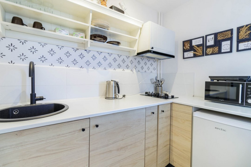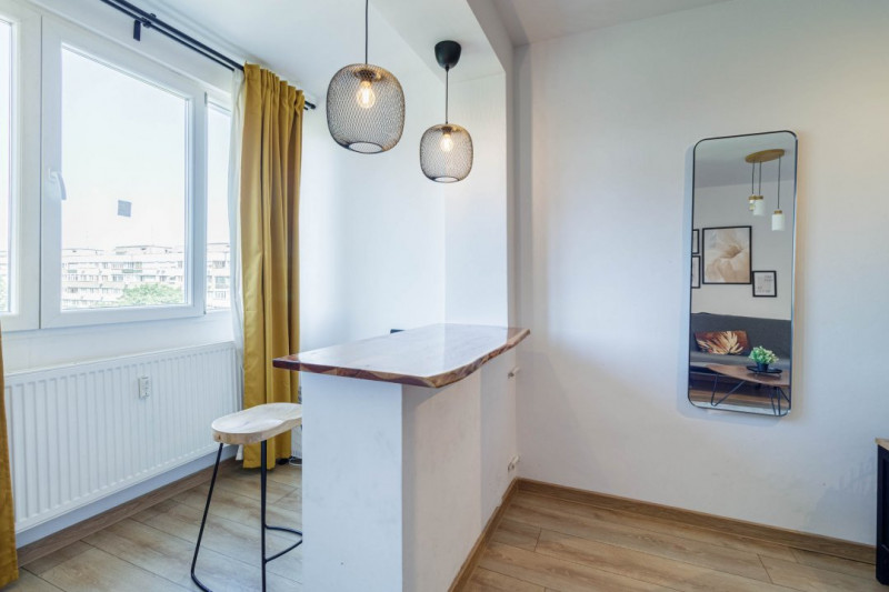 Bucătăria este complet mobilată și utilată, iar balconul s-a transformat într-un spațiu special, perfect ca zonă de bar sau colț de luat masa.