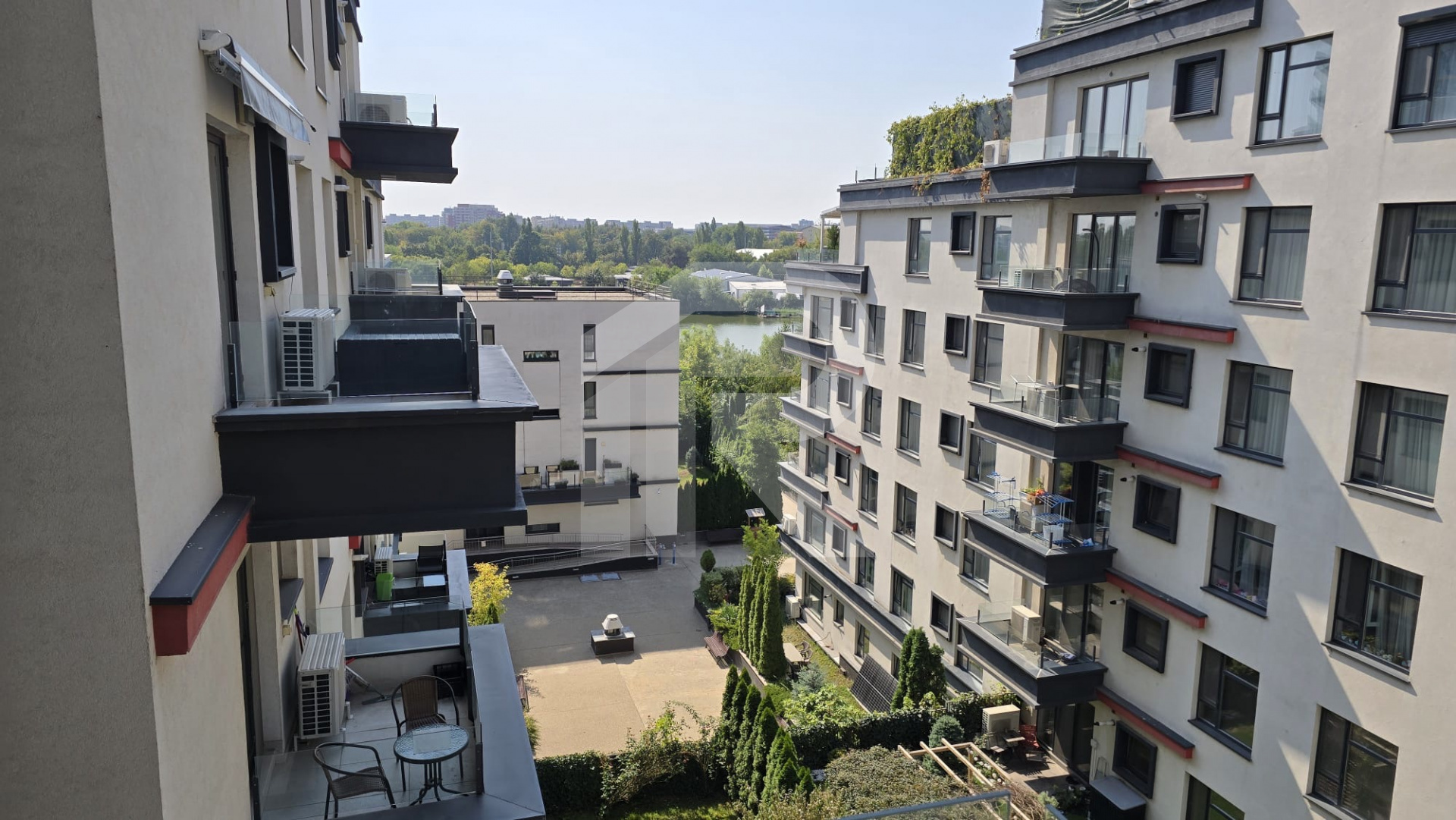 Complexul Laguna Residence este dotat cu multiple spatii de agrement si relaxare: piscina, locuri de joaca pentru copii, gradina privata pe malul lacului Tei.In proximitate se afla Hotel Caro si WorldClass, Promenada Mall, complexul sportiv Pescariu, hotel Marriot, etc. Sunt 2 km pana la zona de terase si restaurante din Floreasca-Dorobanti si 400 m pana la statie RATB.