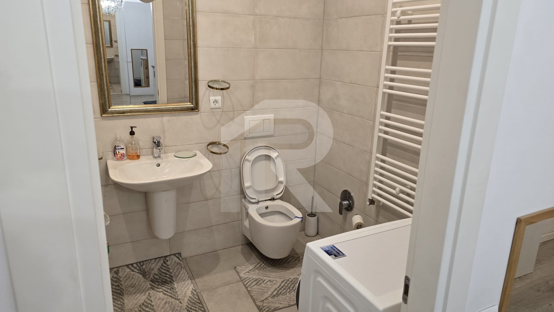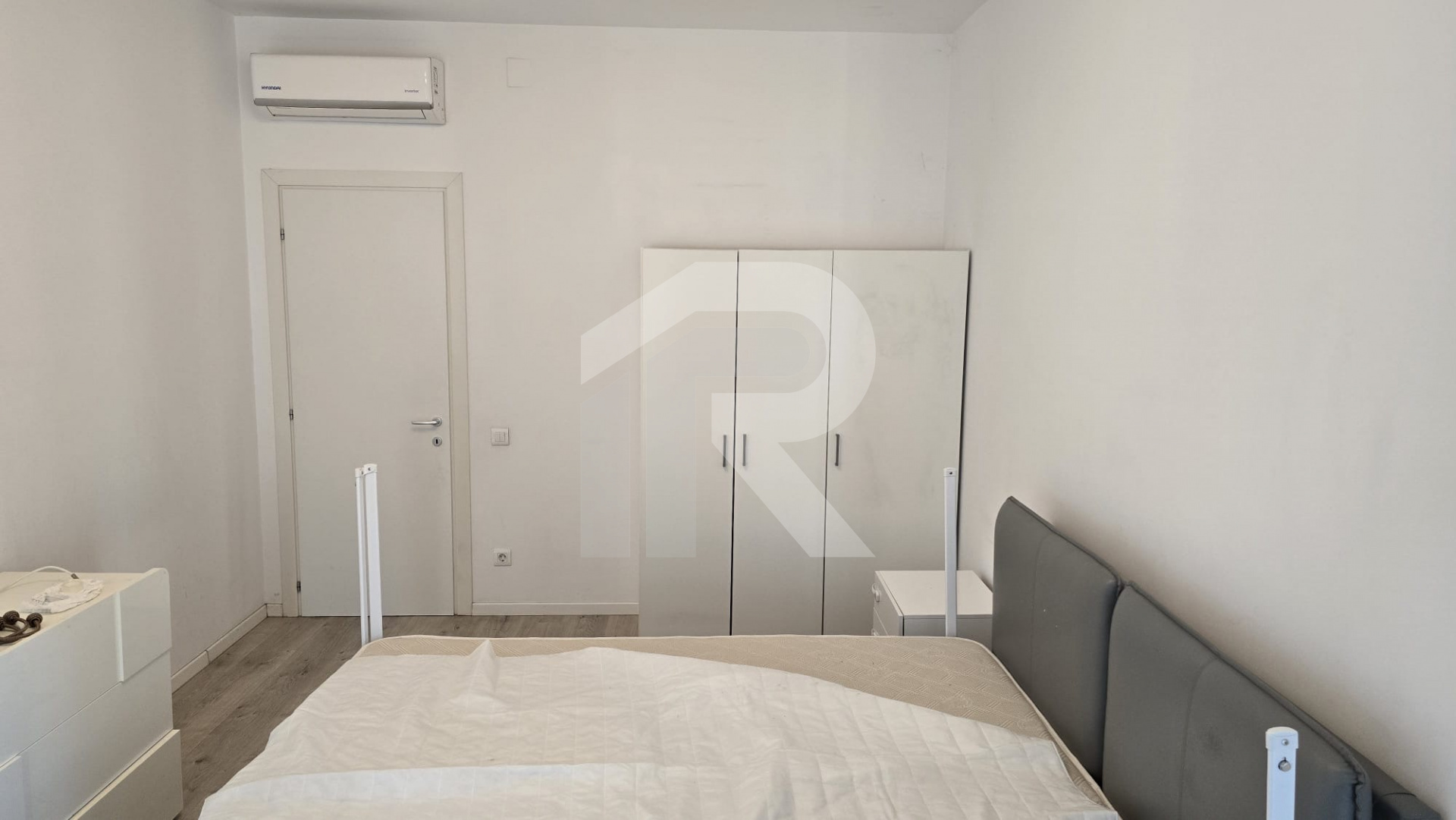 Apartament 2 camere decomandate la etajul 5/7 cu 2 balcoane cu vedere spre lac. Are hol foarte spatios cu spatii de depozitae si pantofar. Ambele camere au A/C, TV si iesire la terasa. Livingul are canapea extensibila si dulap. Dormitorul are pat, dulap, comoda pentru TV. Baie este mare cu cada. Bucataria se afla intre camere, are centrala termica, dotata cu electrocasnice incorporate, inclusiv masina de spalat vase, frigider, cuptor cu microunde, cafetiera. Optional, este disponibil si 1 loc parcare la subsol.