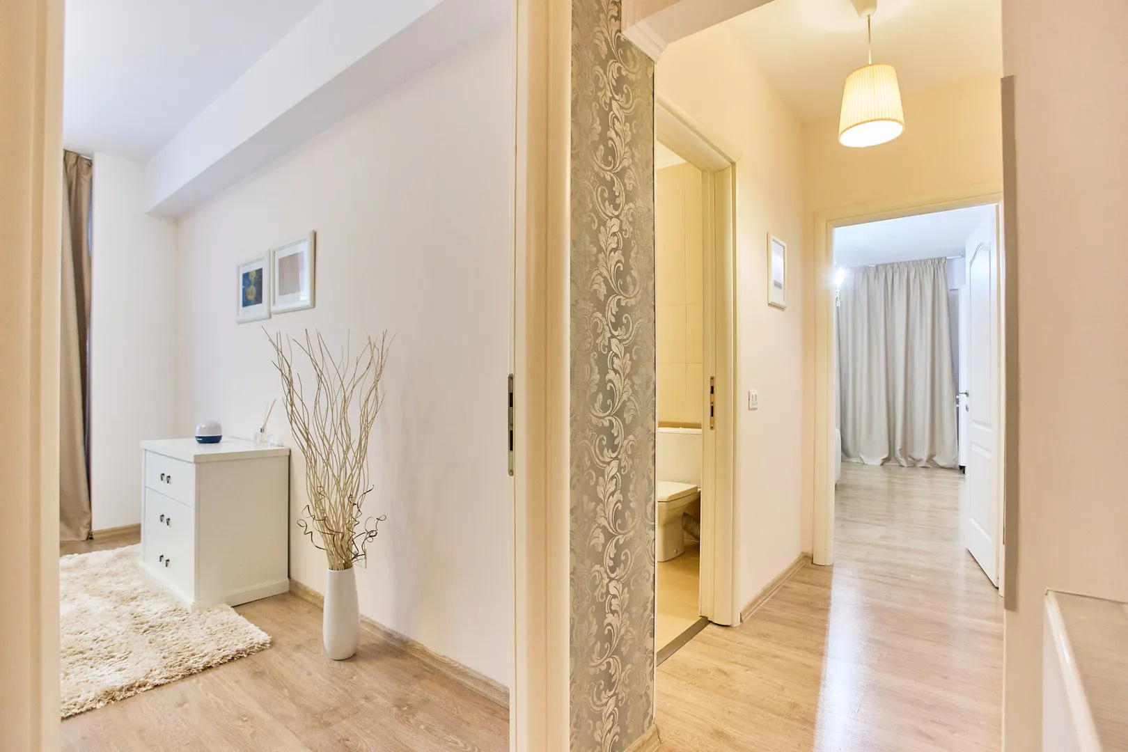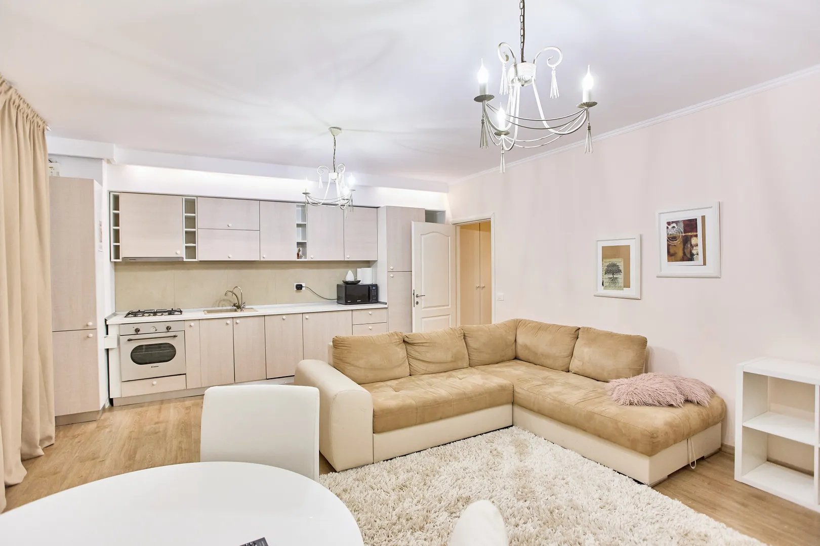 Apartament modern, luminos și elegant, complet mobilat și utilat, situat la parterul unui bloc boutique construit în 2017, cu recepție spațioasă și zone comune foarte bine întreținute.
