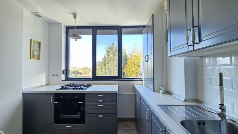 Livingul generos comunică cu bucătăria deschisă – un spațiu care inspiră relaxare și poftă de a petrece timp alături de cei dragi. Dormitorul este intim, baia este dotata cu cadă, iar balconul îți oferă intimitatea perfectă pentru o cafea de dimineață sau un moment de respiro seara. Totul este proaspăt zugrăvit în 2024, astfel încât te poți muta imediat, fără griji și fără alte investiții.