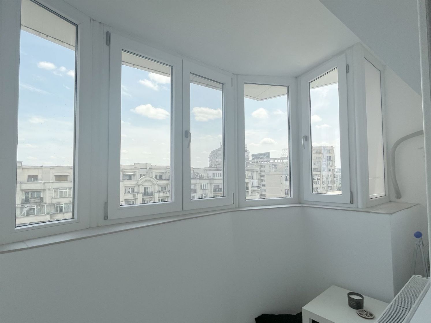 Apartament 3 camere total renovat, cu centrala termica proprie, Bucataria complet echipata, inclusiv masina de spalat vase, spatiul de luat masa, A/C, canapea si TV 180 cm.Are 2 dormitoare, 1 Dormitor:pat, spatii de depozitare, birou, fereastra franceza orientata spre Est, A/C, balcon;2 Dormitor: pat, spatii de depozitare, TV, A/C, fereastra spre balcon, orientare Vest.Sunt 2 bai, Baia mare cu cada si fereastra, Baie de serviciu cu dus.Apartamentul se afla la etajul 9/9, Piata Alba Iulia-Decebal, bloc cu 2 intrari si este supravegheat video 24/24.