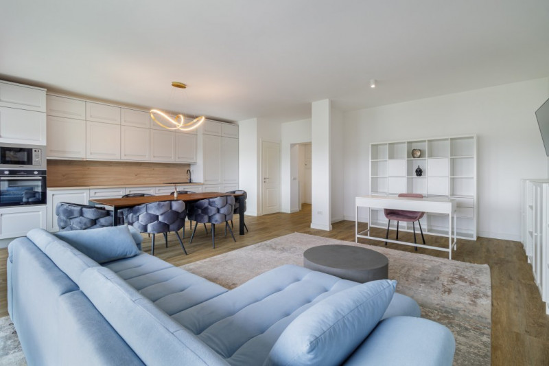 Cu o suprafață de 91 mp utili (104 mp în total, incluzând balconul de 6 mp și boxa generoasă de 7 mp), apartamentul se remarcă printr-o compartimentare modernă: 3 camere, 2 dormitoare si un living generos, gândit pentru confort și eleganță. Apartamentul se vinde complet mobilat si utilat.