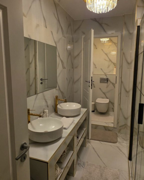 Bucătărie complet echipată, cu electrocasnice premium: inducție Electrolux, cuptor Whirlpool Smart, frigider și microunde Samsung, mașină de spălat vase. În baie ai mașină de spălat haine + uscător. Totul funcțional, totul pregătit.
