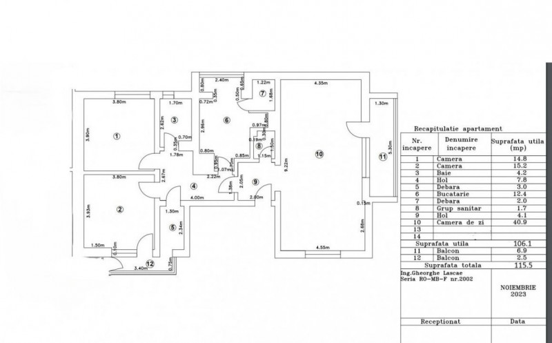 Apartamentul disponibil pentru inchiriere a fost renovat integral in 2024, este situat la etajul 2/3 si dispune de o suprafata utila de 115 mp, 15 mp camera depozitare si 2 balcoane.
