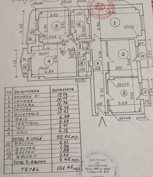 Dispune de compartimentare eficienta, de tip decomandat, incaperi spatioase si luminoase, avand suprafaa utila de 92 mp, plus 4 balcoane, insumand 102 mp.