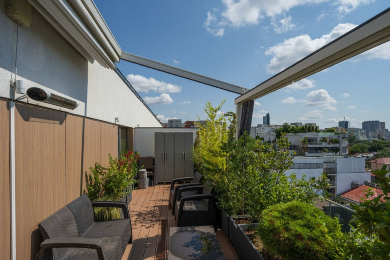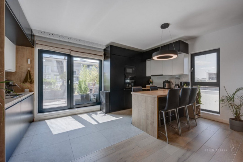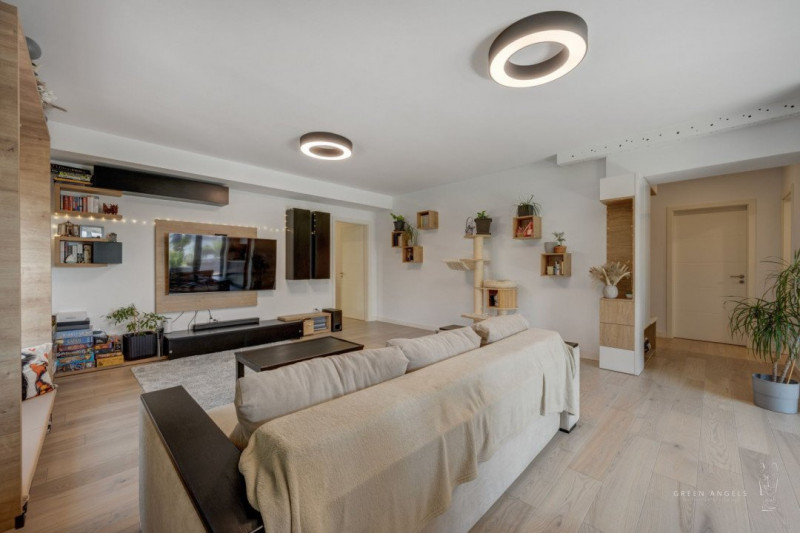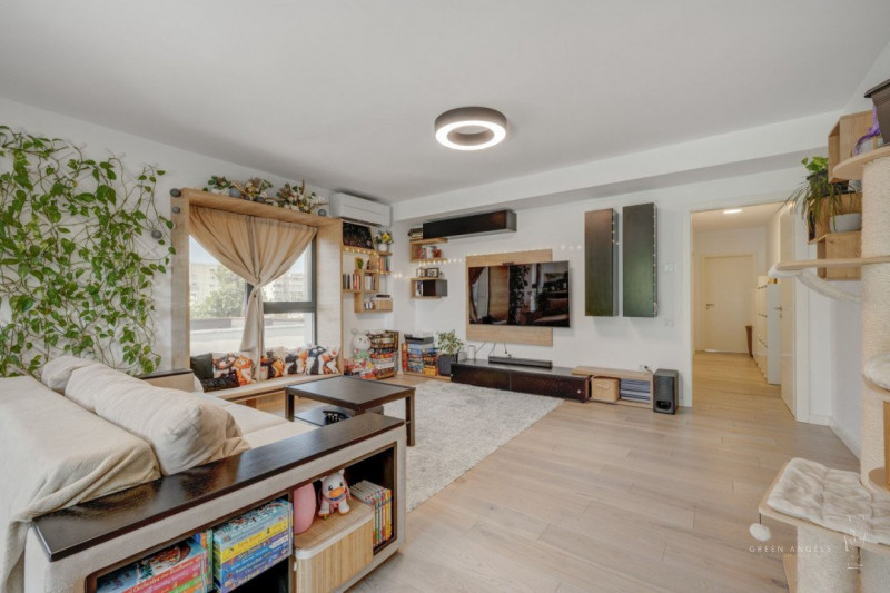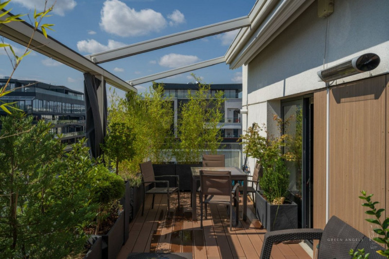 Apartament-ul pe care il avem in portofoliu ideal pentru cineva care isi doreste cat mai mai multa liniste, aflandu-se la ultimul etaj al ansamblului Ela Victoriei. Apartamentul are 4 camere, as spune ca este excelent impartit, perfect pentru cei care lucreaza de acasa. Apartamentul dispune de o terasa generoasa, de 31 mp, amplasata pe fata blocului, ideala pentru a petrece timp de calitate alaturi de familie sau de prieteni. Terasa este complet amenajata, dotata cu pergola, astfel incat sa poata fi folosita pe tot timpul anului. Separat, se poate achizitona un loc de parcare in subsol si unul suprateran.