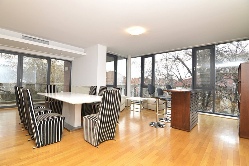 Localizare: Va propunem spre inchiriere un apartament cu 5 camere situat in complexul exclusivist Washington Residence, in zona Dorobanti, una dintre cele mai prestigioase si bine cotate zone rezidentiale din Bucuresti. Amplasarea beneficiaza de un cadru elegant si select, in apropierea cartierelor Primaverii, Aviatorilor si Kiseleff, oferind acces rapid catre centre de business, ambasade, restaurante premium, scoli internationale si parcuri precum Herastrau si Kiseleff