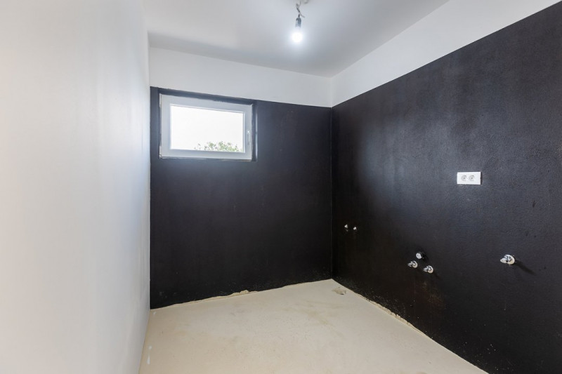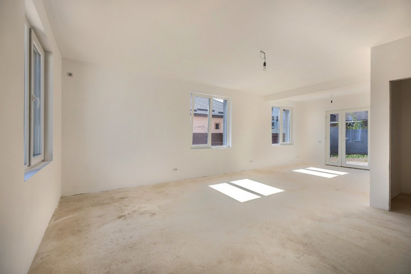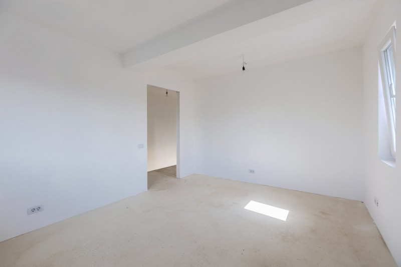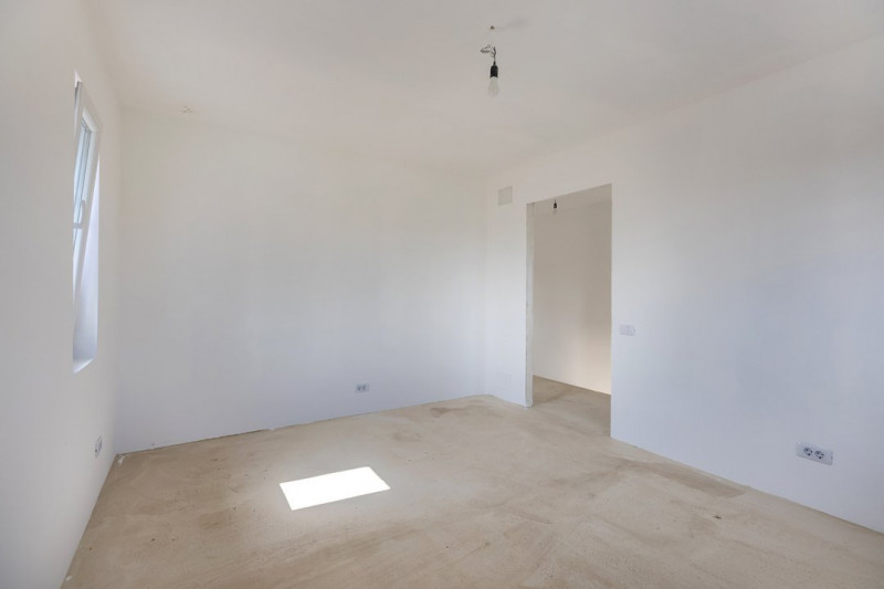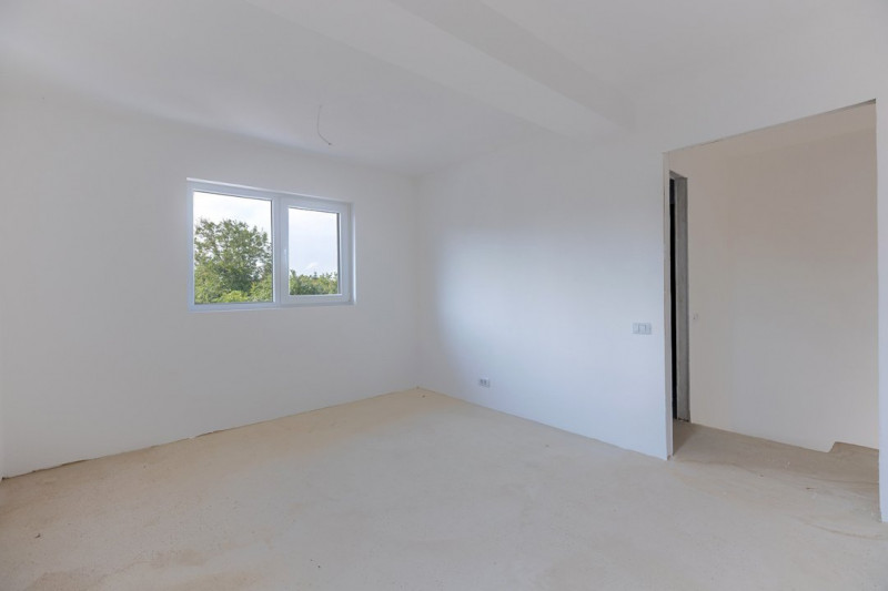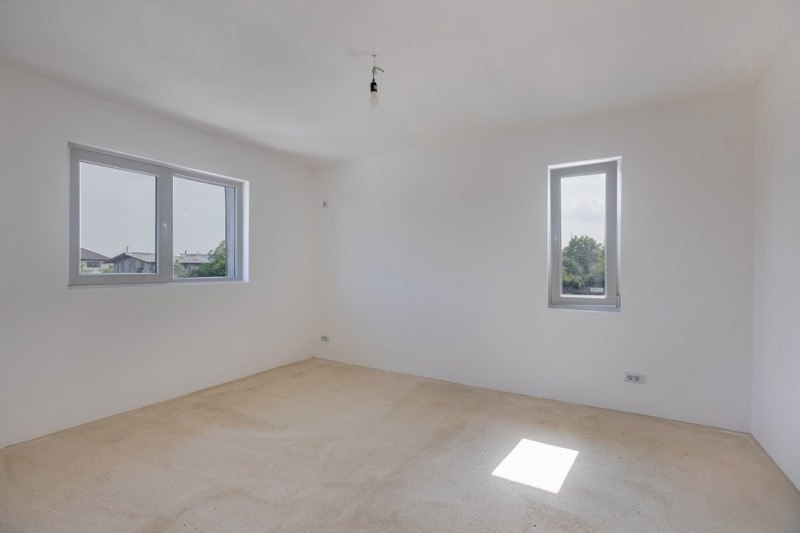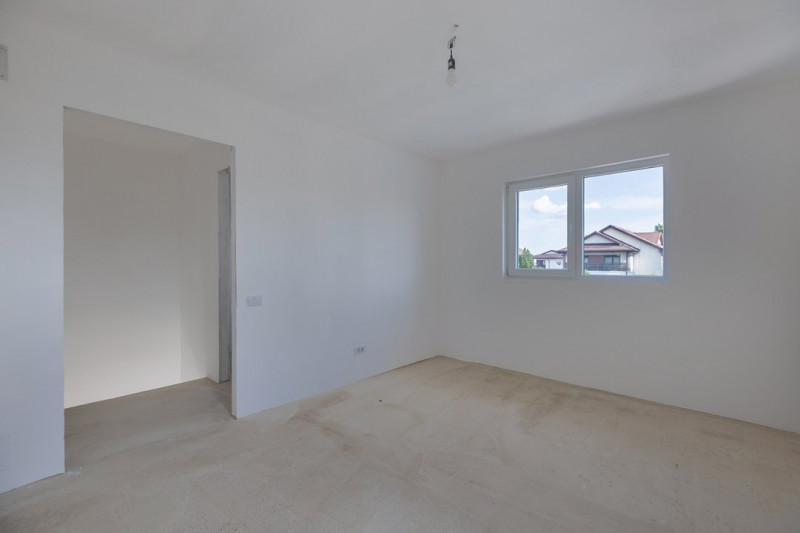 Construcția este realizată pe cadre de beton armat, cu zidărie portantă, izolație exterioară din polistiren de 10 cm și vată bazaltică, acoperiș din tablă tip Lindab. Podul este spațios, ideal pentru depozitare sau ulterior amenajare.