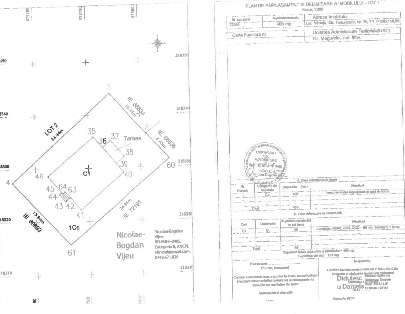 - Teren cu Suprafață de 408 mp, cu deschidere de 17 ml, complet împrejmuit pentru intimitate și siguranță.
