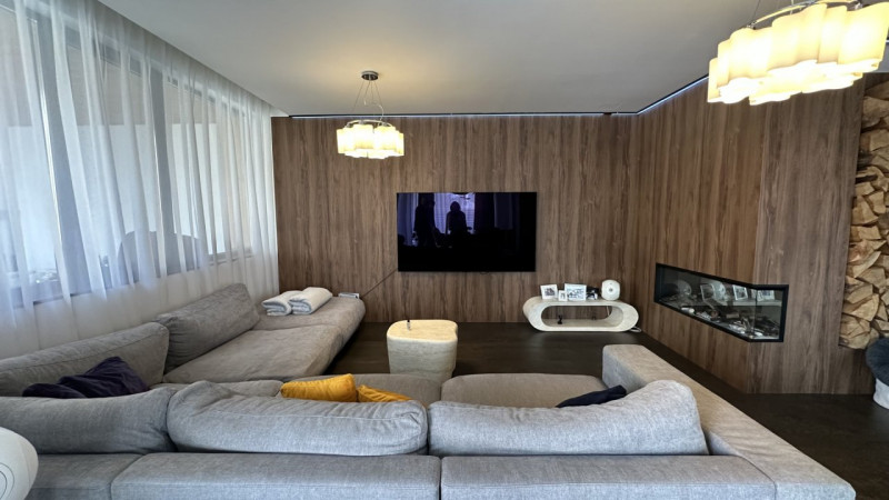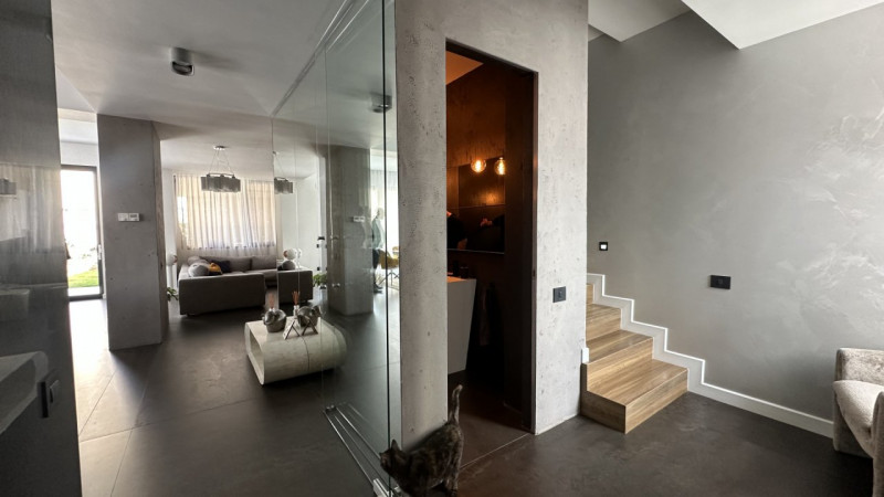 -Spațiile sunt gândite fluid, cu suprafețe vitrate mari care lasă lumina să curgă natural în fiecare colț al casei.