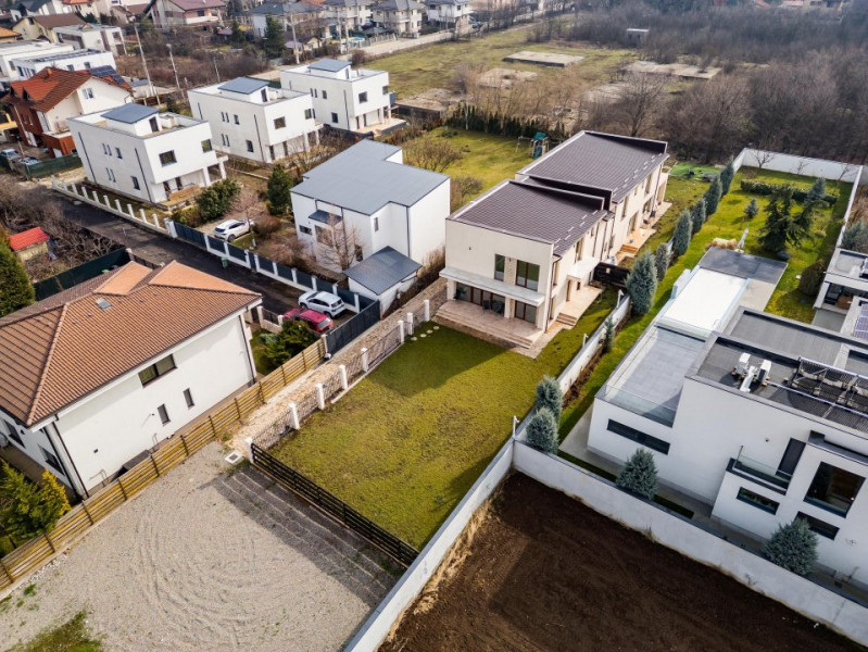 Vă prezentăm spre vânzare o vilă elegantă, cu design contemporan, și compartimentare excelentă, situată într-o zonă rezidențială liniștită și bine cotată din Corbeanca – ideală pentru familiile care își doresc confort, intimitate și acces rapid către București.