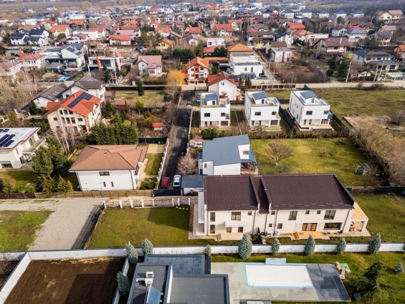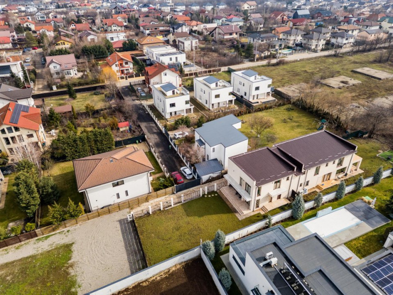 Situată într-un cartier aerisit din Corbeanca, proprietatea beneficiază de proximitate față de școli, grădinițe, supermarketuri, zone verzi și principalele artere de acces către Capitală.