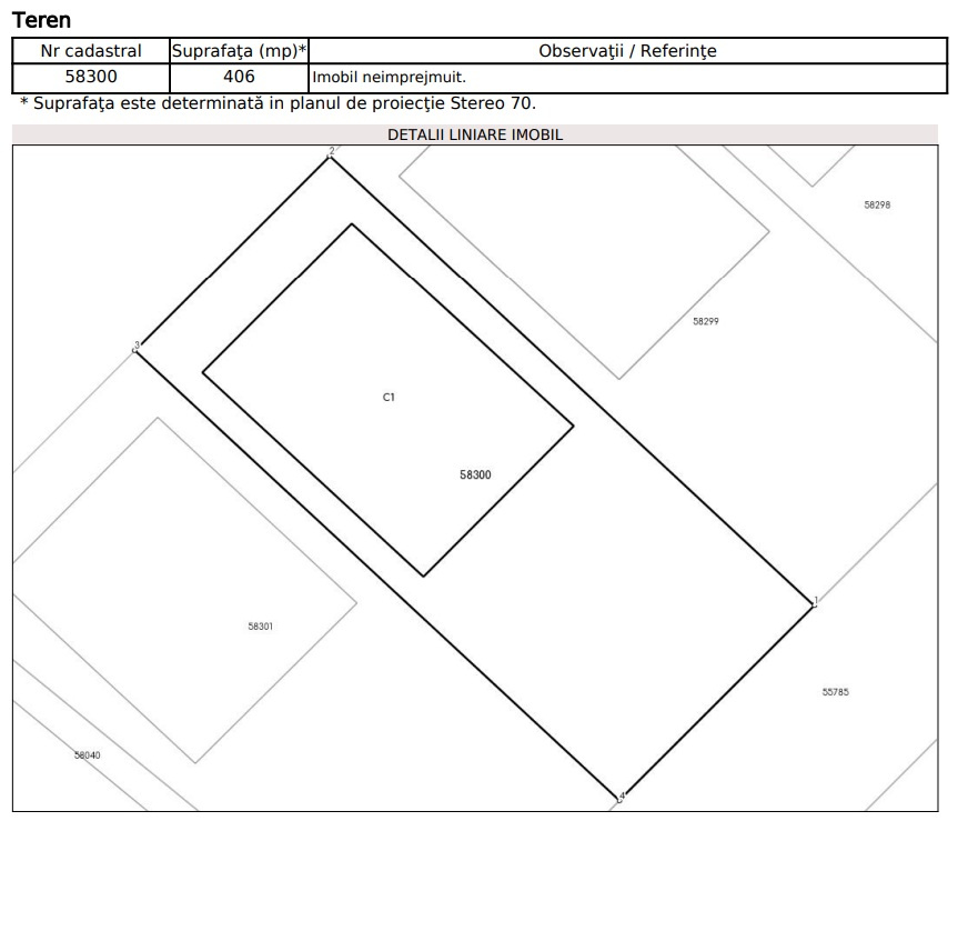 Teren are o supafata de 406 mp, cu deschidere de 13 ml, cu 2 locuri de parcare si o mica gradina.