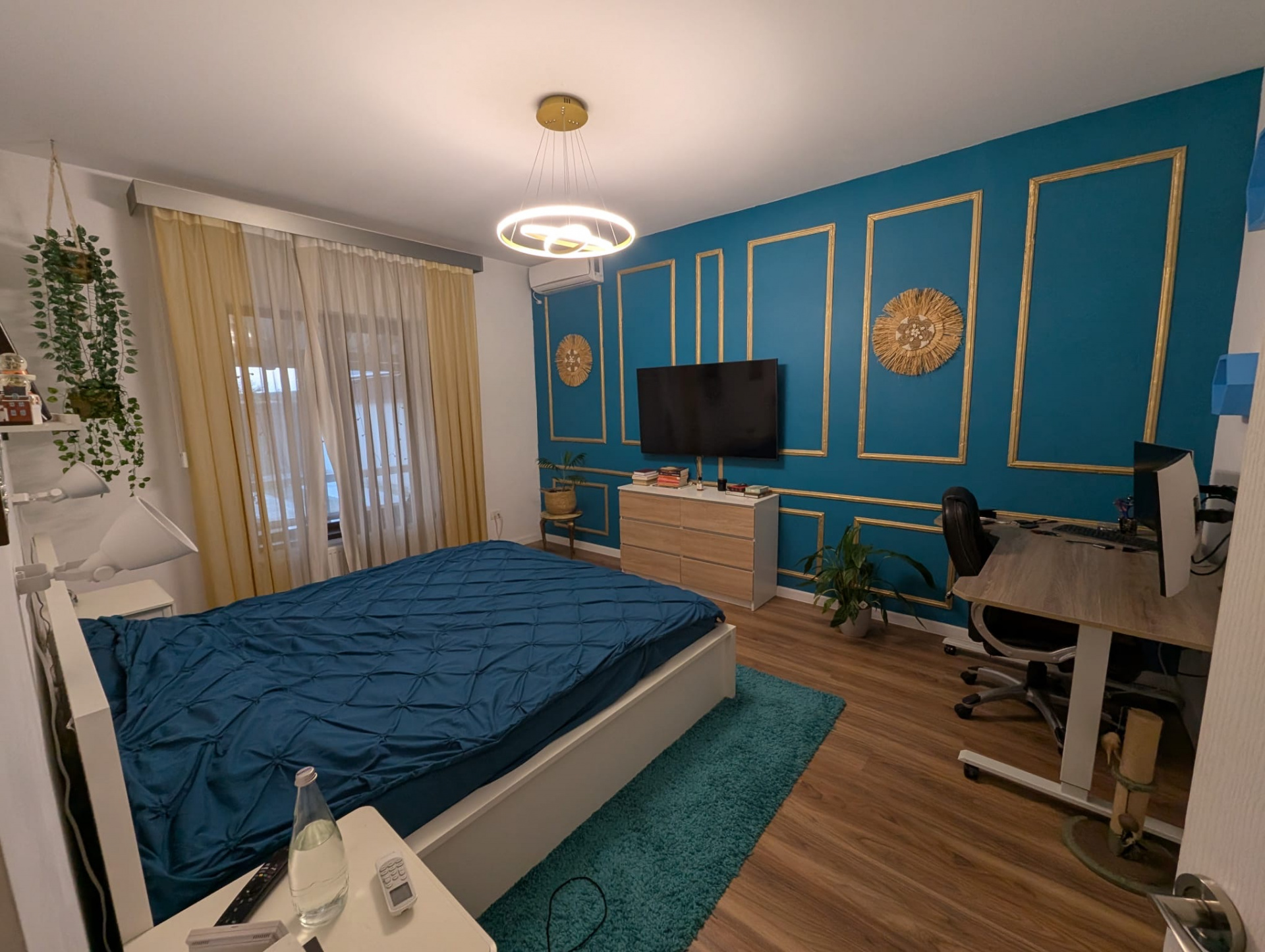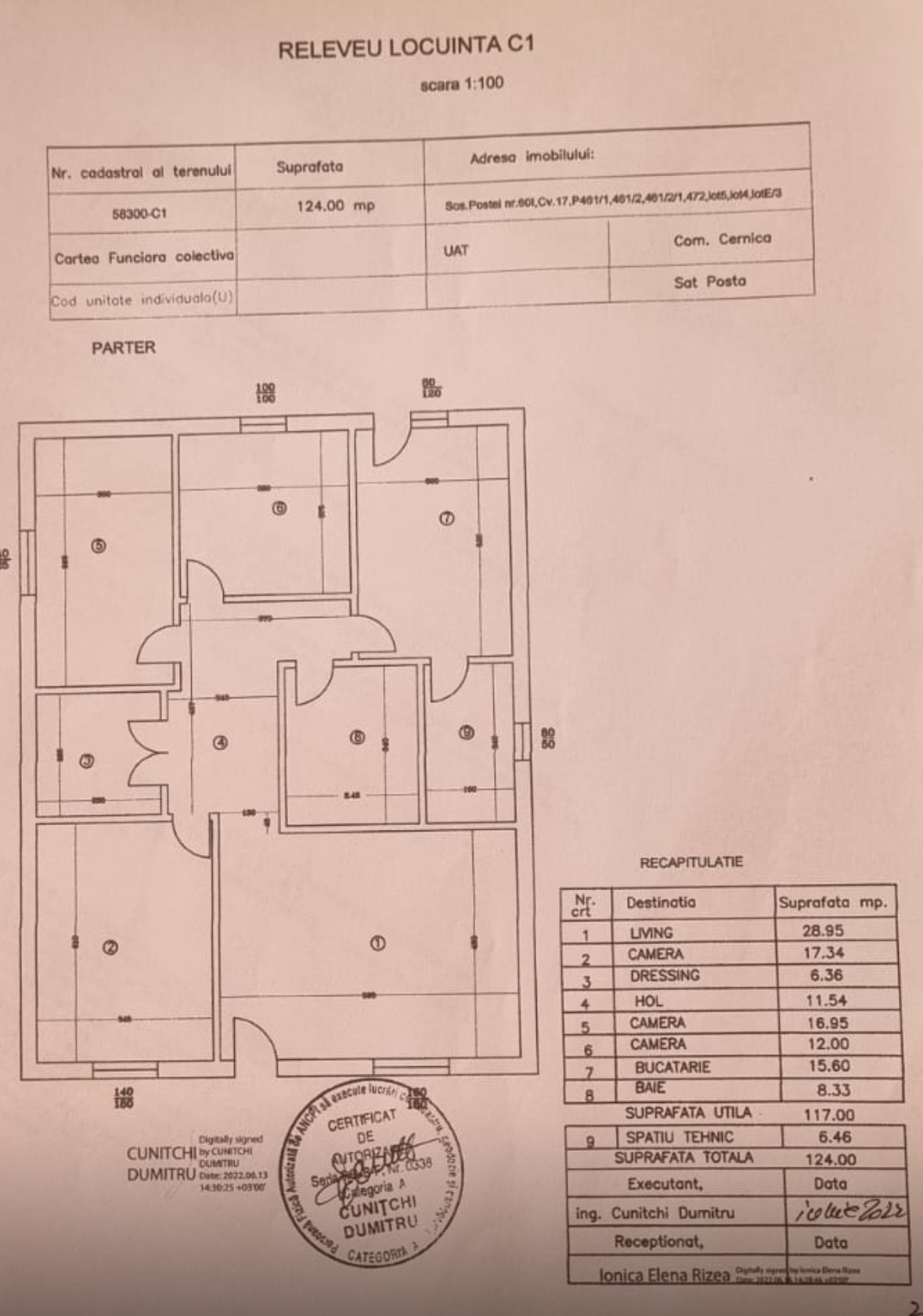 Casa are 4 camere, este total mobilata si utilata, are un Living spatios, trei dormitoare luminoase, baie mare cu fereastra, dressing, camera tehnica, iar bucataria are iesirea catre terasa din spatele casei.