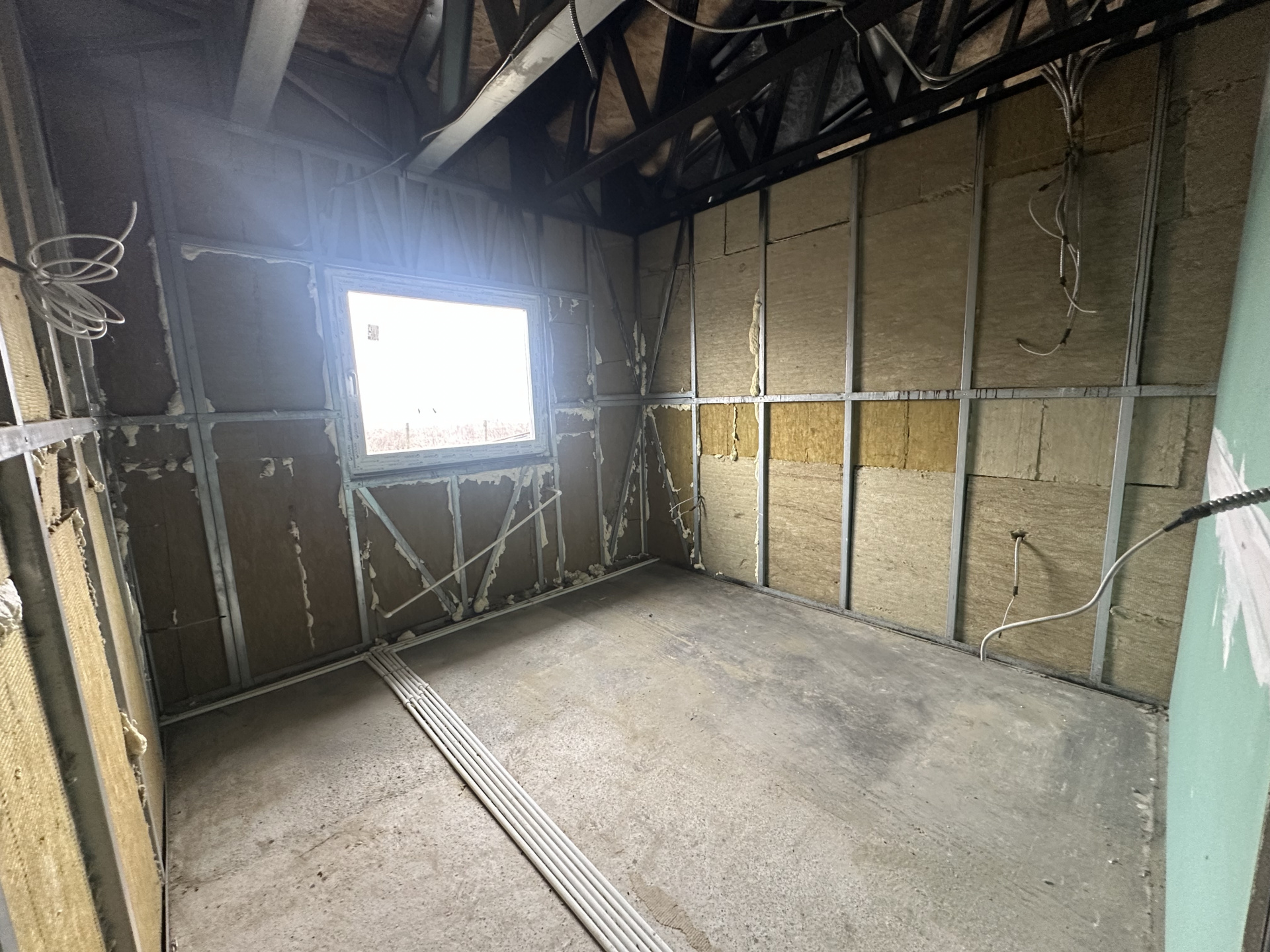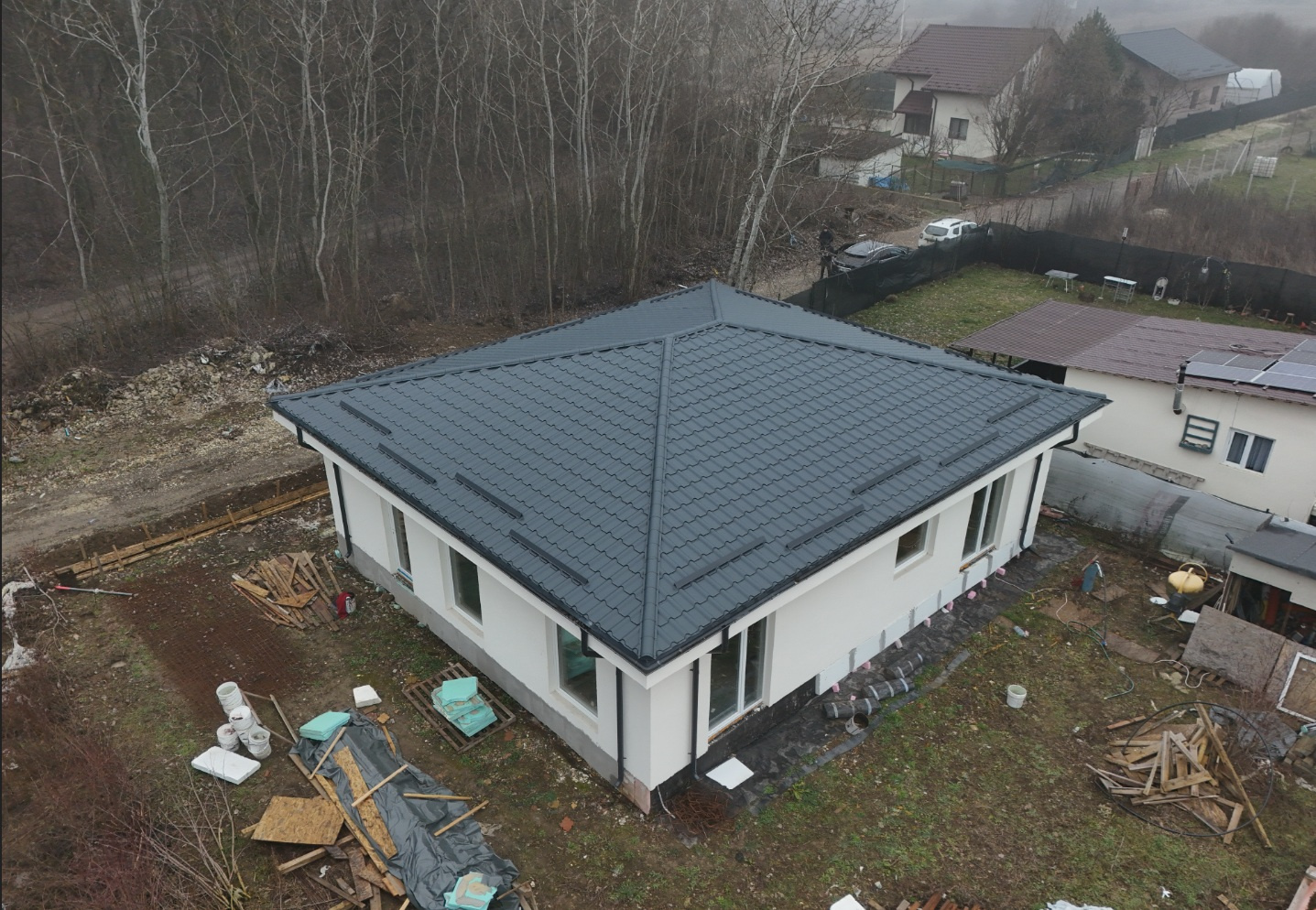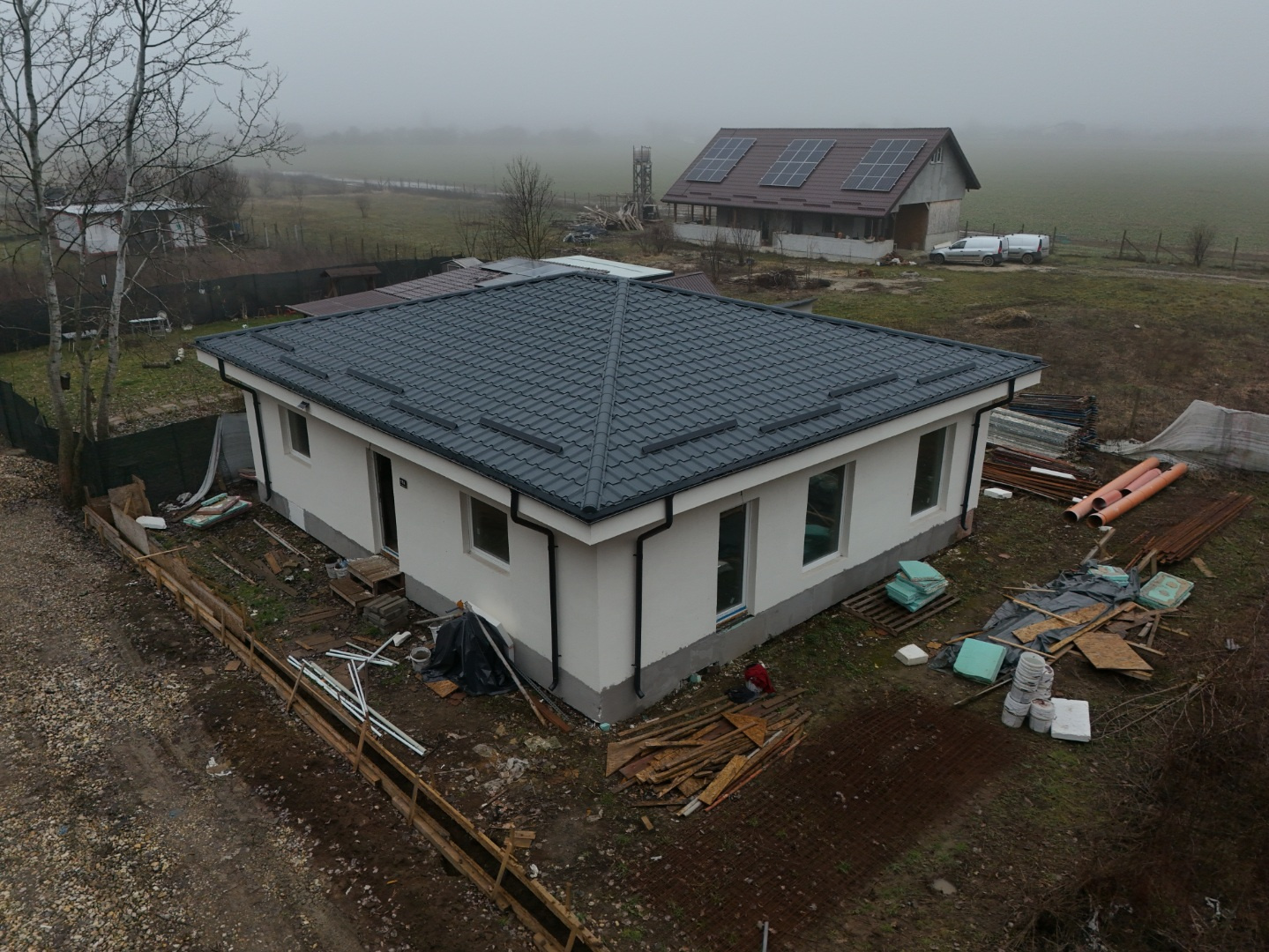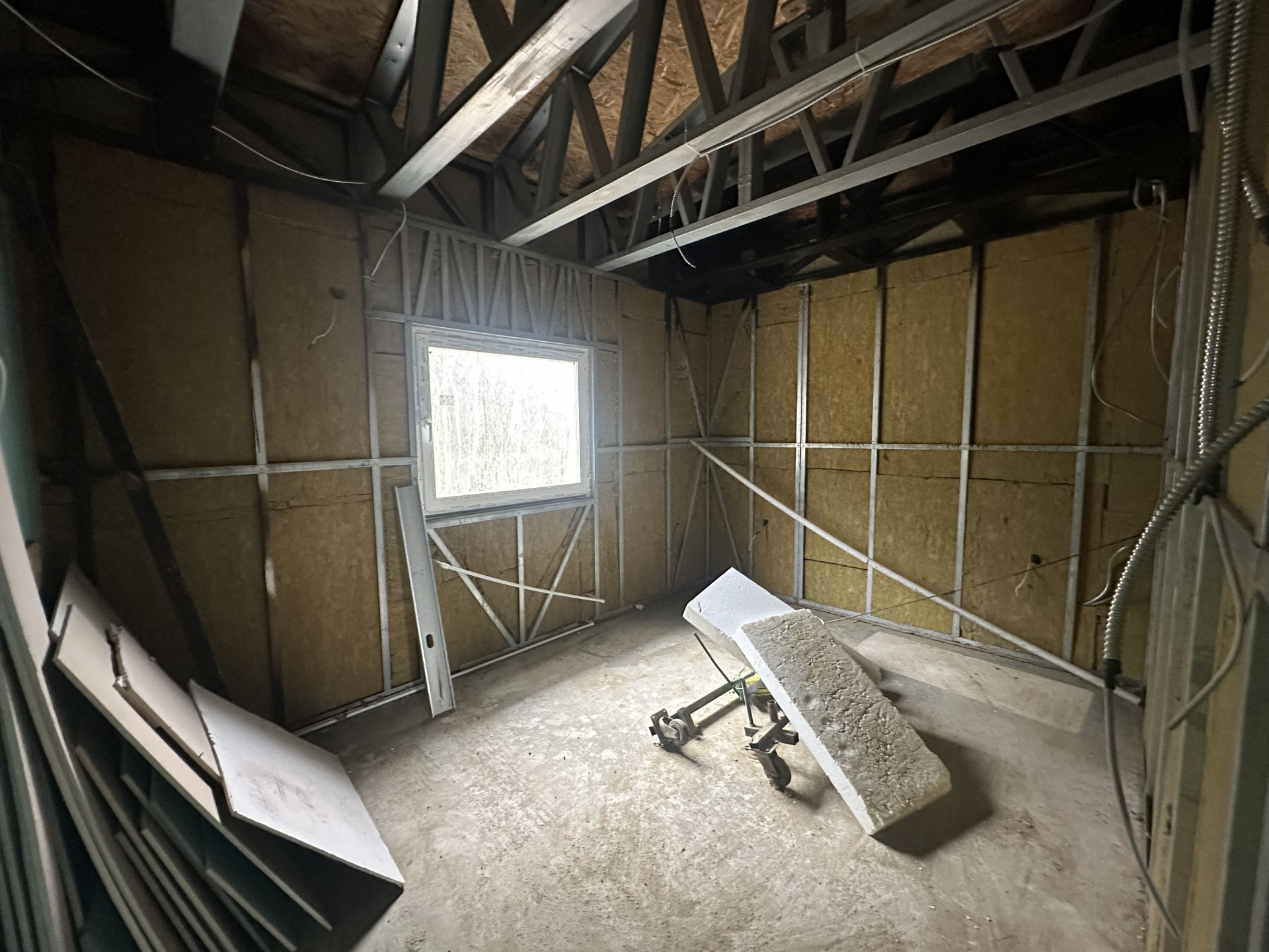 Construită în 2025 pe structură metalică zincată (Light Steel Frame), un sistem modern și eficient energetic, casa beneficiază de izolație din vată minerală bazaltică, placare OSB pentru rigidizare și sistem termoizolant exterior, asigurând un confort termic ridicat și costuri reduse de întreținere.