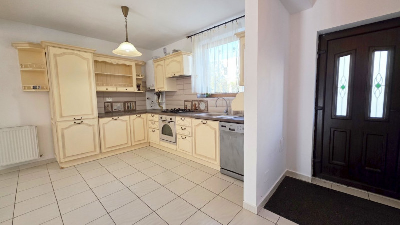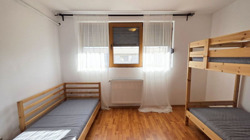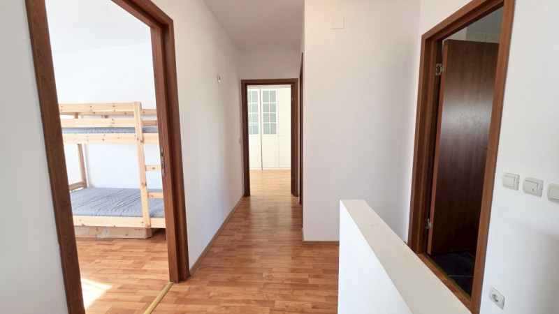Altfel, casa, pe cat de generoasa si confortabila, este pe atat de intima, atat cat isi doreste orice familie doritoare de liniste si confort sporit. Caci, in completarea livingului imens cu bucatarie deschisa si echipata complet, a dinning-ului si grupului sanitar de la parter, se regasesc la etaj trei dormitoare individuale si o baie, toate in aceeasi nota reconfortanta.