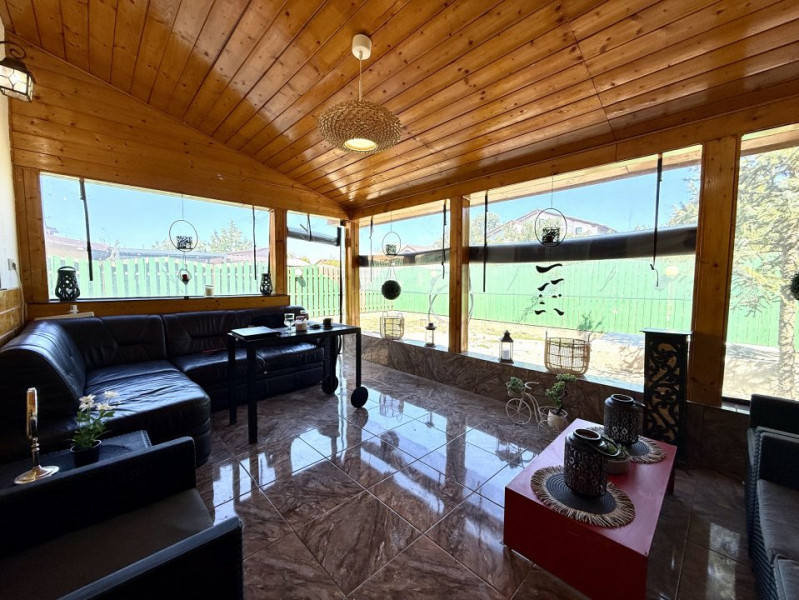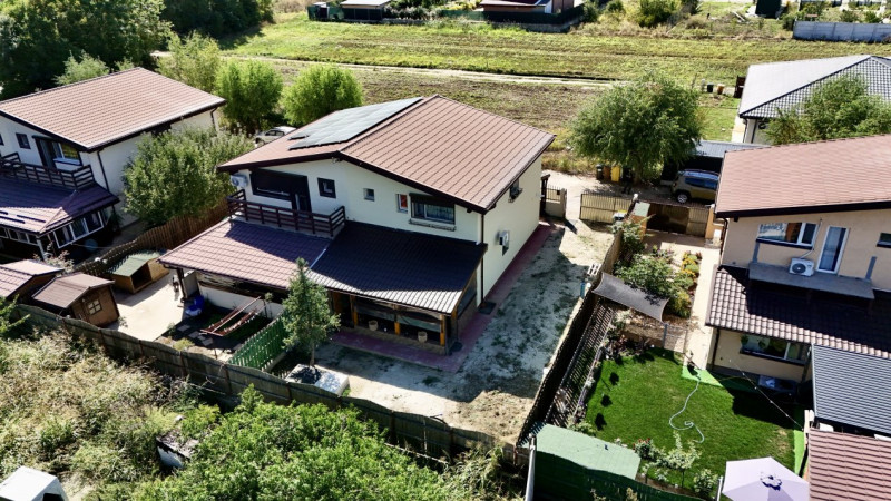 Casa beneficiază de fosă proprie nouă, puț forat recent și racord la apa cartierului, gaze și curent electric. Ferestrele sunt dotate cu rulouri electrice, iar terasa are prelata transparentă împotriva vântului, oferind un spațiu protejat și plăcut pe tot parcursul anului.