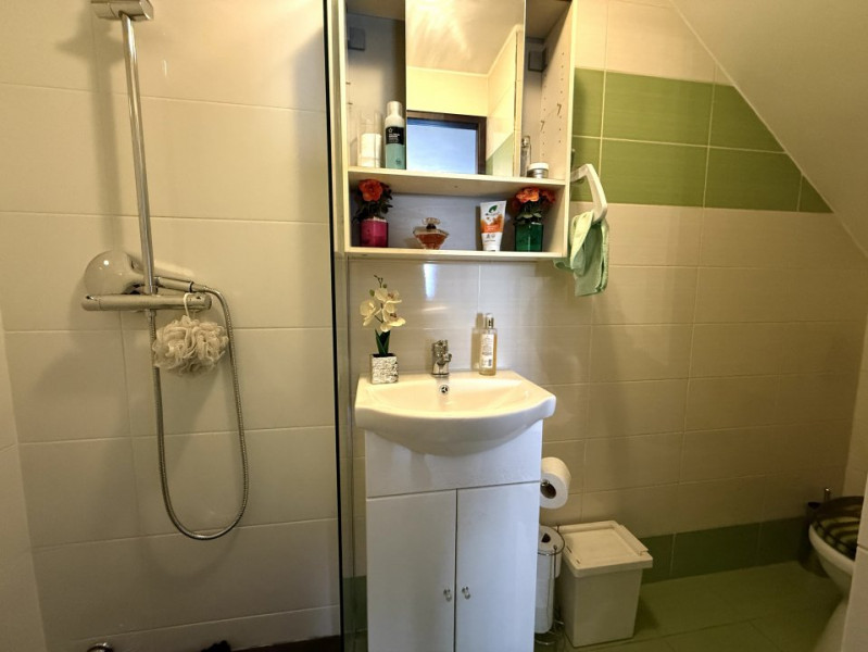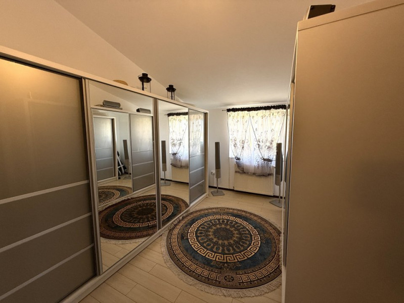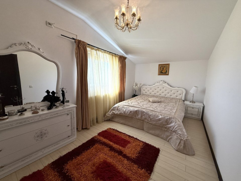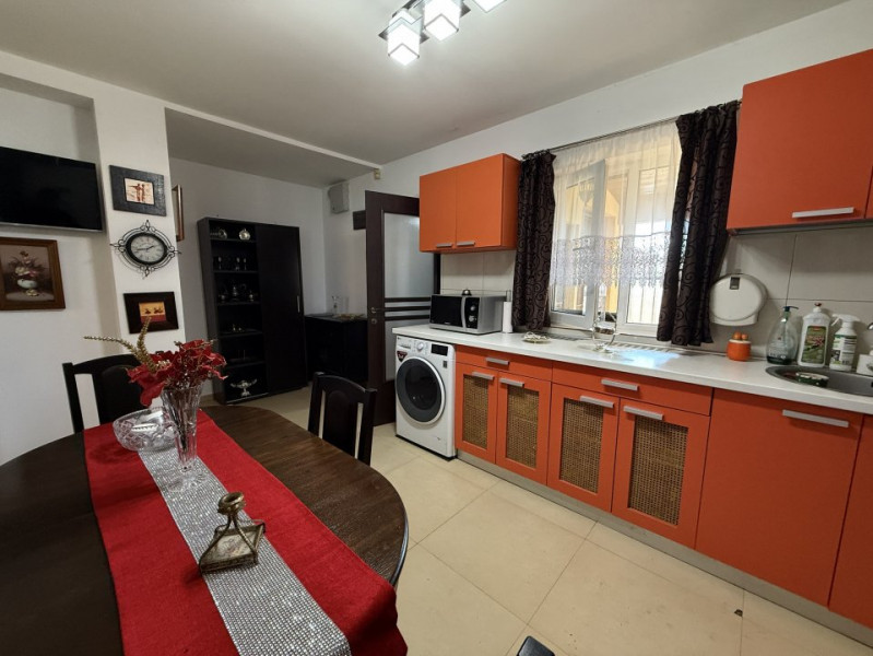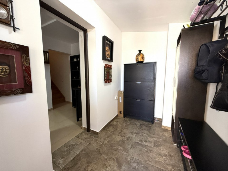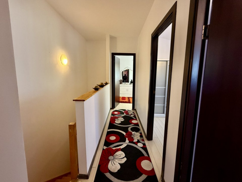 La parter, te întâmpină un living generos, bucătărie închisă, baie de serviciu și hol. Etajul este dedicat zonei de noapte, cu 3 dormitoare (unul folosit acum ca dressing) și o baie principală. Construcția este solidă, din cărămidă poroterm, acoperită cu tablă Lindab, iar peretele comun este triplat și izolat fonic pe ambele părți pentru confort și intimitate.