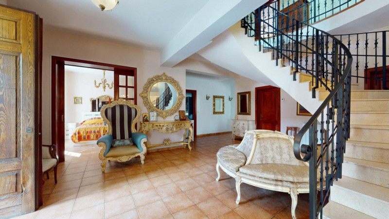 Vă prezentăm spre vânzare, o Vilă elegantă, construită în anul 2000, de către actualul proprietar, în stil clasic-toscan, compusă din Parter+Etaj și pod mansardabil, cu o suprafață construită de 533 mp., la care se adaugă și construcțiile anexe, cu o suprafață construită de 175 mp., edificate pe un teren cu o suprafață de 1.785 mp., poziționată în Petrești-Corbeanca, cu acces imediat din DN1/A0-Șoseaua Unirii.