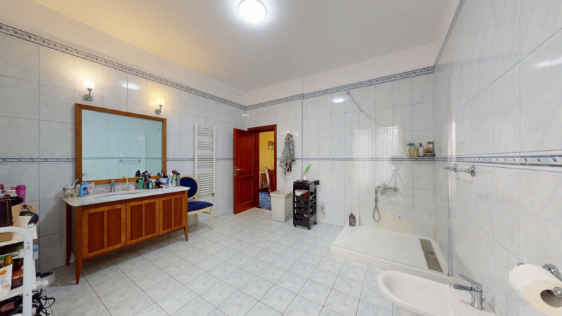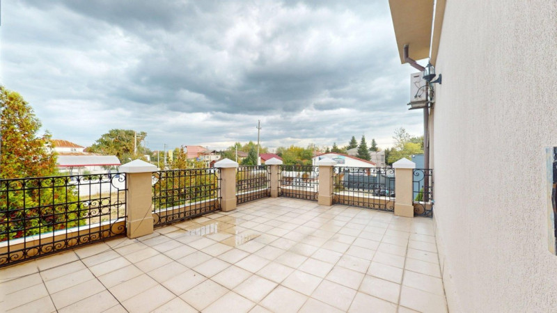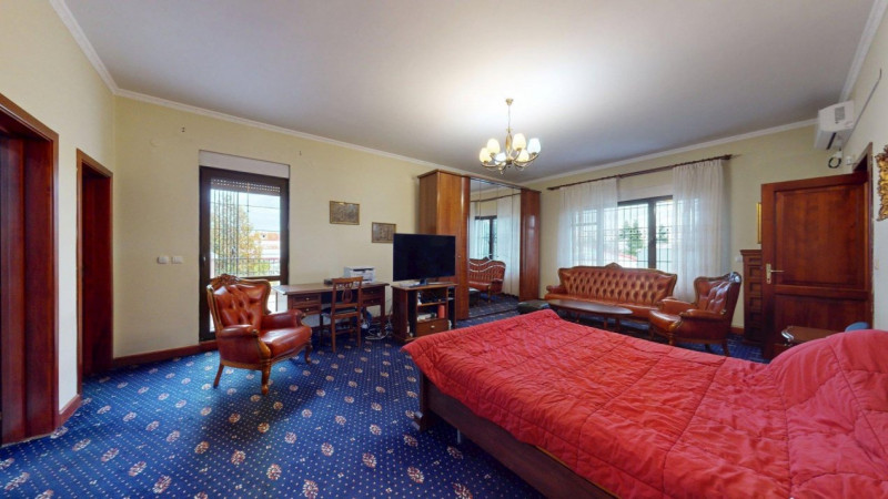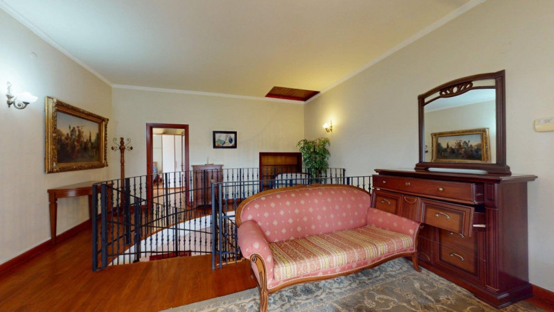 - la etaj: hol acces scară interioară, trei dormitoare, dressing, trei băi/grupuri sanitare, terasă, două balcoane, plus acces la podul mansardabil, cu utilități trase