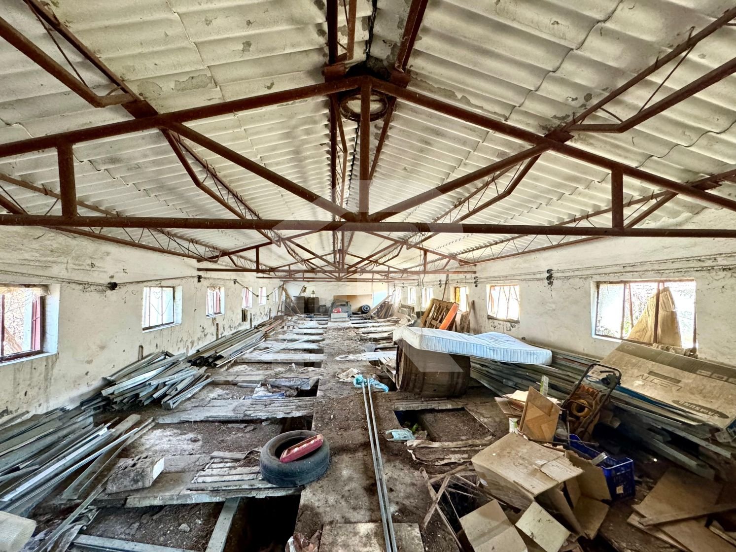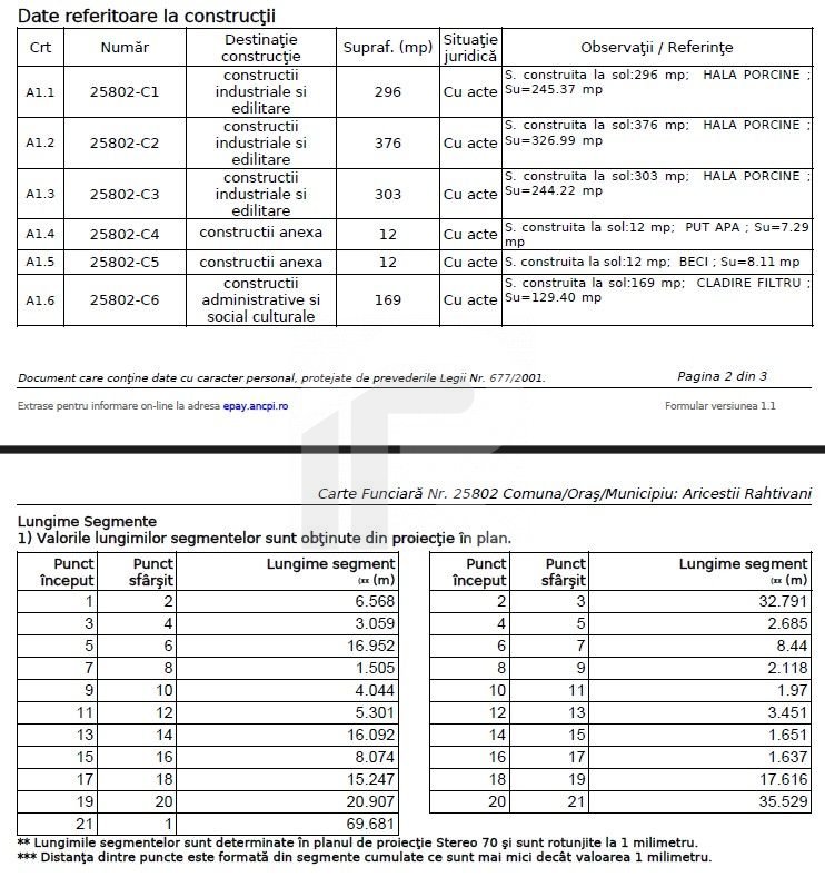 Pe teren sunt construite 3 hale porcine in suprafete utile de 245mp, 376mp si 244mp (doua fiind partial dezafectate), construite din caramida si acoperite cu structura metalica si azbociment, put de 12mp si beci de 12mp.