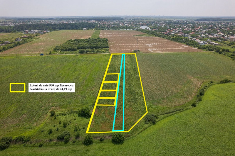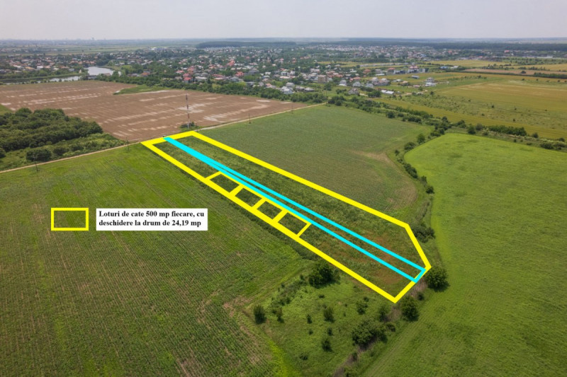 Teren intravilan situat in zona linistita si cu trafic redus, acces rapid catre  DN 1 si A0. Teren ideal pentru constructia unei locuinte individuale de familie. Lot dimensionat optim, in suprafata de 500 mp si o deschidere de 21 m. Vecinatate civilizata, zona omogena, investitie sigura pe termen lung. Disponibile 4 loturi.