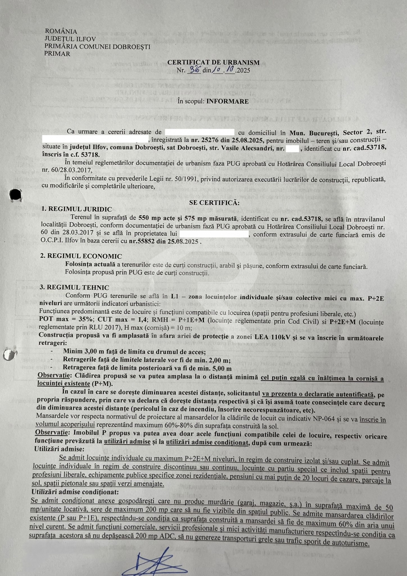 Proprietatea are un teren de 575 mp și o casă din cărămidă (amprentă 90 mp), care necesită renovare completa sau reconstrucție.