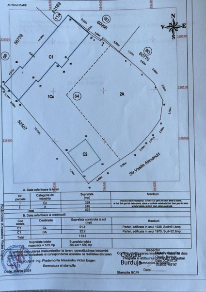 Proprietatea are un teren de 575 mp și o casă din cărămidă (amprentă 90 mp), care necesită renovare completa sau reconstrucție.