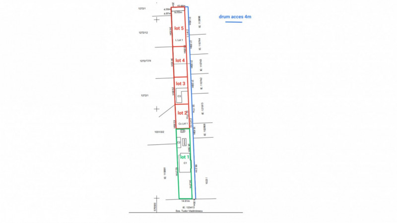 Cu o lățime de aproximativ 15 metri și o lungime de 210 metri, terenul permite o varietate de configurații de parcelare, adaptabile nevoilor cumpărătorului. De asemenea, dispune de un drum de acces privat cu o lățime de 4 metri, asigurând astfel o circulație facilă și accesibilitate.