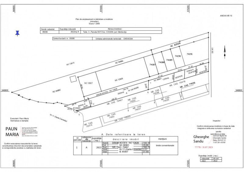 Te trezesti dimineata cu aerul rece al padurii care iti mangaie fata, iar soarele se strecoara printre coroanele copacilor ca o promisiune. Acest teren de 2822 mp, situat in satul Cocani, este o foaie alba pentru visurile tale — fie ca vrei o casa de weekend, un proiect de familie sau un refugiu permanent. Linistea locului si proximitatea directa la padure iti ofera intimitate, aer curat si acel sentiment rar de tihna pe care il cauti in fiecare zi.