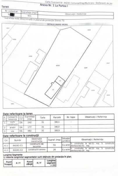 Aceasta proprietate reprezinta o oportunitate excelenta pentru cei care isi doresc sa construiasca o casa intr-o zona linistita si bine pozitionata, in Stefanestii de Jos, pe Strada Violetelor nr. 5. Terenul are o suprafata de 901 mp si un front stradal de 17 metri, oferind spatiu amplu pentru realizarea unei locuinte confortabile, cu gradina si anexe, conform propriului proiect.