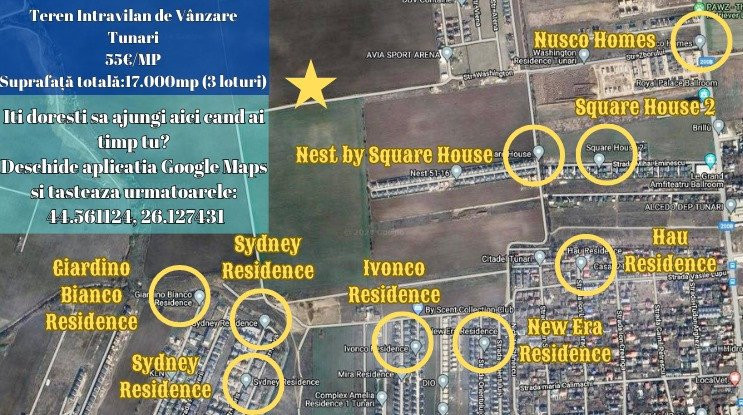 Oportunitate de investiție unică pentru dezvoltatori imobiliari! Vă prezentăm un teren intravilan generos cu o suprafață totală de 17.000 mp situat într-o zonă dinamică și în plină expansiune la un preț atractiv de doar 45 de euro/mp.
